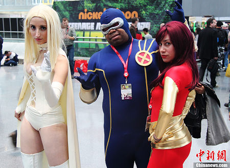 当地时间10月10日,2013年纽约动漫展火爆开幕,来自全美和世界各地的数以万计动漫迷蜂拥而至。纽约动漫展日益受到业界高度关注,成为全球动漫界的盛会之一。动漫展上的Cosplay引人注目。李洋 摄