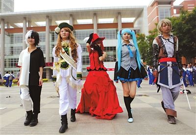 5月23日,银川二中校园里热闹非凡,动漫社的5名学生在表演cosplay(动漫表演)秀。当日,该校机器人社、国际象棋社、轮滑社等20多个社团轮番秀技,在展示社团发展成果的同时,吸引更多学生加入到丰富的课余生活中来。 本报记者周丽芳摄