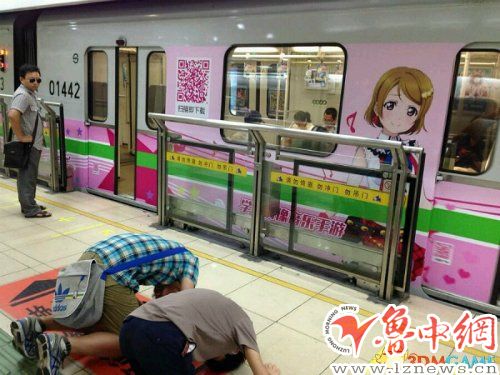 据《东方早报》报道,当一列贴满动漫人物的上海地铁2号线列车驶进站后,几名男性粉丝当场“下跪膜拜”。近日,上海地铁2号线一列贴满手游广告、被动漫迷称为“痛列车”的列车运营后,几乎每天都有动漫迷在各站当场跪拜列车。看到如此过激举动,很多乘客都称被吓着了。据了解,这列列车车厢外侧贴满了日本一部动漫里9名成员的人物彩绘,而被称为“LL二次元痛列车”。