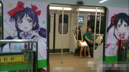 在动漫迷中,这列列车被称为“LL二次元痛列车”,因为其车厢外侧贴满了日本动漫《Love live!》里9名成员的立绘,车厢内也随处可见《Love live!》原作手机游戏的广告和动漫人物。动漫粉丝们称,这是上海乃至中国首列“痛列车”。