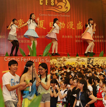 “花千骨”、FFF团、“鬼灯”,一大群着奇装异服的动漫角色吸引了数千动漫迷,共和酒店里人气爆棚。8月7日,湘西北有史以来规模最大的动漫嘉年华——常德首届“夏日动漫盛典”在这里举行,全国知名Cos嘉宾空降常德,20余个Cos社团同台竞技,一系列动漫活动引爆动漫迷热情。