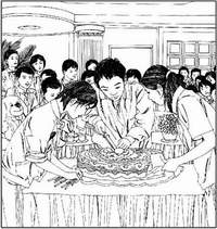 这套稿子共187幅,从收集素材到创作完成约四个月时间,算是突击完成的,在这段创作时间里,我不分昼夜绘制这部连环画,由于时间紧迫,问题也就很多,这些遗憾只能留待下部作品去克服了。