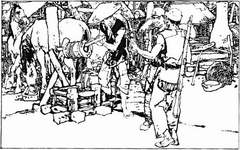 我总觉得应该画我所喜欢画的画,我会用心去画,在画里面渗透我的追求、我的思想、我的情感。也不知什么原因,我特别钟爱军事题材,我崇拜军人(可惜没能当上兵)。小的时候,我和弟弟曾躲在家中用纸叠出一把把小手枪插在腰上,然后在纸上画了一大堆的“好人”与“坏人”在战斗,也算是过了一把瘾。这爱好倒也给我在以后从事连环画创作中带来了不少的好处。学生时代,我收藏了大量军事题材的印刷品。我藏有的两册苏联卫国战争油画集,使我爱不释手。从敬佩列宾、苏里柯夫,到后来认识了德拉克洛瓦和大卫。《近卫军临刑的早晨》、《伏尔加河上的纤夫》、《但丁的渡舟》、《希阿岛的屠杀》、《马拉之死》……一幅幅印刷品,深深地打动了我的心,我开始向往历史画的创作了。在我收集剪贴中,大半是前辈画家创作的历史画印刷品。至今还清晰地记得有鲍加的《淮海战役》、蔡亮的《延安的火炬》、全山石的《宁死不屈》、詹建俊的《狼牙山五壮士》等。这些作品和日后在学院中临摹过的中国古代名画一样,对我今天在创作上的成长和成熟起了非常重要的作用,促使我走上了这条充满艰辛的历史画创造道路。