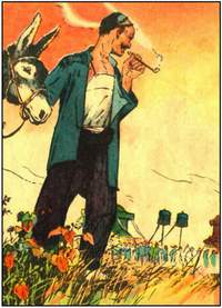 对待故事发生的事件抱着什么态度,在每一幅画面上都有所表现,而一套画的最末一幅往往是表现自己对这个故事的态度最明显的地方。有时,我画到一幅画的中间就有点激动,非先画一画结局不可。这三套画的收尾就可以说明这一点。《十五贯》在捕获娄阿鼠之后本来可以结束的,后来又添加了一幅熊友兰和苏戌娟领着小孩去参拜祝公祠。为什么这么画呢,因为自己很早以前看过"错斩崔宁"(十五贯剧本的原身),对于被冤枉的人就抱有极大的同情,也许自己有过这样的体会的缘故,对苏戌娟这位少女非常喜爱,若是不画她和熊友兰结为夫妇就难以解脱我对这两位衔冤者的遗憾重负。这个孤苦伶仃的少女有了这样一个老实厚道的伴侣我很满意,所以画了之后颇感安慰。《天仙配》里的"玉皇爷"并未出现,所以在尾声中我画董永向苍天伸出双手愤怒地嘶叫,大自然的风雨齐来,已经说明"玉皇爷"的威力和这个故事悲剧的结局,我自己和董永一样并不甘心,还是要给"玉皇爷"一个警告。《王者》的煞尾是一个农民拉着他的失而复得的驴子悠闲地吸着烟眺望远处给巡抚送葬的人群。我这样想:人民是永存的,矗立在天地间的是人民,而那些统治者还不如人民的驴子能在我的画面中占有那么高那么大的地方。