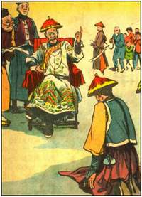 画《王者》时就不同了,起初确有过惰性,仍然用纤细秀丽的线描来表达,逐渐地自己感到"不解渴"了。(《王者》的第十二幅巡抚坐在椅子上发抖,就还残留着画《天仙配》的笔迹。别的都改画了,就这一幅没有改。)构思中的气氛境界促使自己要大刷在抹。同时故事虽假,自己的"生活"不假,想到怎么真实而具体的程度,就尽量表达到怎么程度,由于气氛阴森自然而然地就抹上了调子和阴影。(如果不这样真实具体,读者就会说这有什么值得大惊小怪的。而故事里一位巡抚大人会吓死,那就讲不通了)在初画《王者》时用的是横幅,后来画大门楼时才改用立幅;鸟瞰的手法也是随着故事情节需要而产生的,而不是先想到要在构图上来个奇特手法。