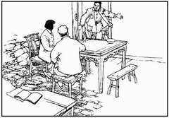 邓秀梅是贯串全书的主要人物之一,作者把握了这个人物的性格和她所处的地位,比较完整地塑造了女干部的生动形象。团支书陈大春,第20幅一出场,就给人带来一股农村青年的锐气。他身材魁梧,在进门时前倾的动作里,作者有意识地同时介绍了这位民兵队长的性格。特别在互助组扩大会议上,他听到受了秋丝瓜指使的符贱庚的破坏性的发言这一段中,先是扭转头紧皱双眉,强抑怒火,继而霍地站了起来和符争执,直到踏上凳子准备扑过去揍那继续饶舌的符,又在大家劝阻下收住的动态,这几个连续动作和面部表情,是表现了这位不够沉着而莽撞的陈大春的个性的。但作者也不是简单的来理解和处理人物的性格,而是多方面地表现了他。如在20幅陈大春冒冒失失冲进门来后发现了陌生的邓秀梅时的惶乱,当邓谈起和他正在恋爱的盛淑君的入团问题时,又描绘出这个虎性子刚毅的汉子身上,也露出少有的尴尬和忸怩。这样,作者就在一定程度上表现了人物性格的复杂性。作