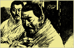 连环画《楚汉之战》,给我的第一印象是豪华精美,有一种爱不释手的感觉。封面人物刘邦和项羽极具动态感、传神感,对比强烈。刘邦淡淡地微笑着,透出一些沉稳与自信;而项羽则怒目圆睁,尽显英雄本色。一个笑里藏刀,一个虎视眈眈,战争的乌云已经笼罩。打开楚汉大战之门,历史似乎又在重现。一股浓烈的战争气息扑面而来,令人紧张而窒息。一幕幕的厮杀,一幕幕的勾心斗角,直到你合上书,那种感觉依然挥之不去。我钦佩这位军旅画家,与其说是他用手画成,不如说他是用心去画的。因为他了解战争,懂得战争,知道如何表现战争。通过一支小小的钢笔,就真实地再现了二千多年前冷兵器时代的残酷搏杀战争场面,使其跃然纸上。画面带给读者的感觉是那样的强烈,有一种巨大的震撼力,直拔心弦,使你与作者、画面产生了共振。我想:这是本书最为成功的地方。《楚汉之战》