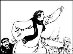 这位走投无路,六神无主的胖局长,那些安然袖手、冷眼旁观的马弁们,在同一事态下之神情不同,原因何在?读者看了,自然会豁然悟出他们的阶级本质之不同,悟出这些,又恰好预示出后文中反动军警在施洋义正辞严的启发下放下武器的根据。这正是画面内在的连续作用之一。