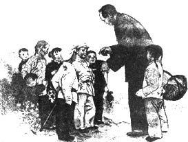 三、细节生动充满童趣。这套连环画虽然篇幅少,情节简单,但刻画细致,对话风趣,读起来趣味横生。如第五幅描绘毛主席一出来散步,娃娃们就要求看“千里眼”,毛主席亲切地说:“你们可以看,但要小心一些!”第六幅描绘娃娃们都要看,毛主席叫他们不要争,站好队一个一个轮流看。第七幅一个娃娃问毛主席:“您的棉袄怎么烂了?”毛主席说:“老鼠咬的。”娃娃们都笑了,他们知道首长是艰苦奋斗,舍不得换新的。第八幅毛主席摸着一个娃娃的头亲切地说:“跟我走吧,去不去?”娃娃们都想去,可是自己人小,怕跟不上队伍,一个娃娃天真地说:“我走不动。”毛主席说:“不要紧,骑我的马!”一个伟大领袖和儿童天真对话,充满稚朴的童趣。画面绘得亲密无间,无拘无束,亲切祥和,使人更感到毛主席的伟大慈祥。