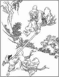 在其他的一些西游记连环画中几乎都是以现实生活中常见的山石、树木作为背景来描绘,很少有像《孙悟空三打白骨精》一本那样在深入生活的基础上,将山石、树木拟人化。如果不是笔者寡闻的话,也只有在河北美术出版社出版的连环画《西游记》,同样也是由钱笑呆先生绘画的《女儿国》中,有过少量的几幅画面里,出现过上述的表现手法。由此可见赵宏本、钱笑呆的独具匠心和不凡的创造力。