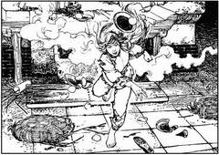 最后一幅画面,太阳光芒四射,周围刀矛高举,翻身解放,继续革命,大众化的处理手法,和此类连环画的结尾大同小异。当然即使片段参展,作些修改也在情理之中,《白毛女》获一等奖充分表明其成功之作。艺术的再现人物,不落痕迹的自然流露与刻意追求的融合大概是颇费些踌躇的。