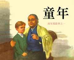 自然,域外题材连环画的鼎盛时期还是在1978年以后到1986年以前的一段时间里。这一时期,欧美、日本、东南亚、非洲、拉丁美洲等一批国家和地区的作品纷纷进入我国。连环画也适应这一潮流,真正做到了百花齐放,从古希腊神话(庞邦本《 伊利亚特的故事》《 阿耳戈英雄历险记》),王怀庆、黄冠余《奥德赛的故事》,徐锡林《威修斯的故事》、沈尧定《伊利亚特》)、古奥运会传奇(姚重庆《奇异的战车赛》)、徐锡林《神之恋》《神坛前的女子》、刘文颉《神奇的药球》,成立《阿波罗和桂冠》,到科学家传记(王秉龙《贝尔》、胡祖清《 哥白尼》、杨建友、赵奇《伽利略》、胡克扎、恽南平《 牛顿》《 伽利略》、马程《勒维亚和亚当斯》、袁洁《萧莱马》、蒲以庄《巴斯德》、费嘉《战病菌》、李肇宏《居里夫人》)音乐家的故事(蒋宝鸿《发烫的手指》、黄英洁、刘克敏《花丛中的大炮》--肖邦,杨劲松、区础坚《命运》)、文学家的故事(英洁、胡若军《从马夫到戏剧大师》、高燕、谭晓春《安徒生的童年》、陈明厚《安徒生》、易至群《普希金》、戚新国《巴尔扎克》、周全友《裴多菲》),品类齐全、应有尽有,更有人民美术出版社"世界历史人物"丛书,上海人美的"世界名人传记丛书、"世界历史故事画库"丛书,江苏人民的"外国文学家故事"丛书、江西人民的"外国古代近代名人青少年时期的故事"丛书,等等,包罗万象,缤纷绚烂,异彩纷呈。  《童年》封面 |