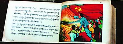另一册党史彩色连环画,是民族出版社于1954年出版的藏文译本《中国共产党简史连环画》(见下图),由赵枫川、古一舟、吴静波绘图,40幅画,每幅均有藏文配译,连环画最后并写有汉文说明。像这样藏汉文对照、图文并茂的党史彩色连环画,闪耀出夺目的光彩,令人爱不释手。