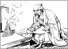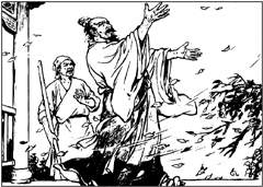 50年代,在中央美院附中读书时,我即已有了由上海人美社出版的《屈原》。董子畏编文、刘旦宅绘画的这部连环画佳作,曾在首届全国连环画创作评奖中荣获绘画二等奖、脚本一等奖。我十分挚爱这部佳作的绘画艺术风格。其艺术特色鲜明,既忠实继承了中国画线描的优良传统,又从西洋画中得到艺术技巧的借鉴,在中西画法的融合中,不纯用白描,而辅之以复线,又间或彩皴擦,使画面黑白灰关系清晰,层次丰富,赋予厚度。这种中西画法交融的艺术技巧及表现形式,在50年代——新中国连环画艺术发展的第一阶段,无疑是开创性的。它的着眼点在于,追求历史的真实性以及细节的具体性,刻意营造战国时代那古朴浑厚的历史氛围,生动塑造爱国诗人屈原那真实自然的艺术形象。画家笔下的人物,从屈原到楚怀王、王后、子兰、秦王、张仪,个个形象鲜明,造型迥异,绝不雷同。面部形象和体态的刻画,解剖准确,神态逼真;画中服饰、器皿、宫室、建筑,描绘得无不精致入微——而这一切,都贯彻了写实与写意相结合的创作原则,该实之处,丝丝入扣,忠于生活,毫不加以矫饰。如用沉稳而有力度的线条勾勒衣纹,使服饰具有粗织物的厚重感,用稍加皴擦的简洁线条,使器皿景物具有自然质朴的真实感。屈原忧国忧民的赤子情怀,流露于紧销的眉宇之间、青筋蹦跳的手掌之上。人物与衬景,有实有虚,虚实相生,既在一定程度上表现了光影关系、块面关系,又将这种表现控制于“点到为止”,极有分寸。例如必要的人影、水影、山影等,既加以渲染而又不留素描的痕迹,大有“写而不写”的传统审美意趣,含蓄而隽永。在古代题材领域,这种中西绘画技法融合的画风,相对于建国初连环画传统的单线白描画风来说,无疑是可贵的艺术探索与创造。祖国大地,从南到北,有一