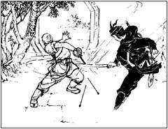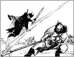 那天晚上,父亲从上海人美社下班回家,吃好晚饭休息片刻,正准备画画时,社里的同事--连环画编辑室的徐良士先生(已故著名连环画脚本作者)来我家作客,他们俩人先是谈了些工作后,父亲便拉开抽屉,准备将《十三妹》画稿给徐良士先生看,请他提点意见,父亲一边在翻抽屉,一边在说着:“怪事,怪事!”后来父亲又拉开旁边的抽屉在寻找《十三妹》画稿,还是未见其踪影,一旁的徐良士先生见父亲这样焦急的样子,连忙提醒父亲:“老徐,是不是将画稿带到人美社去啦!”父亲说肯定没有,看到父亲这种着急的神情,这时在一旁的我心里忐忑不安,但又没有勇气向父亲承认是我私自拿去借给老师的,父亲上上下下搜寻了一遍,还是未果,不得不叫来家里的保姆询问:“你看到谁曾翻过我的抽屉!”保姆直言不讳地告诉父亲:“中午时分,我看见毛毛(我的小名)在写字桌前待过。”父亲一听把脸转向我,两眼直直盯着我,吓得我低下头,不敢正视父亲:“你把《十三妹》画稿弄到什么地方去了。”父亲提高了嗓音向我发问,这时我只好老老实实将私拿他的画稿借给老师的事说了一遍,还没等我说完,脸上就挨了父亲的一记耳光,接着又被父亲踢了两脚,我被打得哇哇大哭,一旁的徐良士先生拉住我父亲,让他消消气。住在隔壁邻居--上海人美社的连环画编文作者章程先生听到我的哭声也赶来问我父亲,为何要发这样大的火痛打孩子,当他得知情况后也批评我的不是。“毛毛,你没有征得父亲的同意,擅自将画稿借给老师,看把你父亲急得这种样子啊!”父亲似乎仍怒气未消,执意要我马上  《十三妹》选页 |