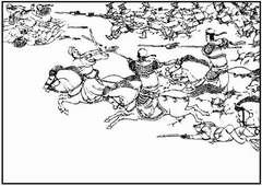 王亦秋先生的创作轨迹,试可分为三个阶段,一是五十年代至文革前,二是文革时期,三是八十年代。五十年代至文革前这一阶段,他与大多数作者一样在严肃认真、一丝不苟的大环境下,其风格较写实,如《智退秦兵》、《蹇叔哭师》、《重耳复国》、《 郑成功收复台湾》等。这里值得一提的是他的《马跃檀溪》这部作品以透视角度多变、心理活动绝妙刻划而独树一帜。他极善于模仿,但并不是照搬,而是加以融汇贯通、学以致用,如他与刘锡永先生合作的《重耳复国》、《 岳飞出世》、《 小刀会》(与 赵宏本合作)、《林海雪原》  《马跃檀溪》选页 |