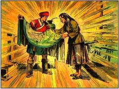 颜梅华已是一位古稀之年的老画家了,他出生于苏州,从业连环画后长期定居上海,至今已有五十余年。在四十年代后期就被称为中国连环画的“江南七雄”之一。在抗日战争时期,他所创作的《群英复国记》是当时一册激励人心的有名的连环画,其选材进步、绘画技法已较熟练,具有当时连坛名家赵宏本的笔墨风貌,仅在画面构图方面取景稍逊一筹,两者相比,画面人物略大于赵宏本的作品。由于当时连环画为普及读者的消闲书,所以,内容方面大多为武侠书。但其在消闲中使一大批中下层社会的群众接受了教育,甚至起到了一定的扫盲作用。直至解放,作者已经有数十册连环画出版。解放后便成了上海美术出版社的连环画主力创作者。(苦于前期图例笔者已无法收集,当时破“四旧”而毁去)。八十年代开始由于年龄、视力等诸因,便开始从事了中国画人物的创作,所以在较近时期发行的大型套书中,除聊斋中的《白秋练》之外,仅在中国成语故事中有看到几个短篇幅的小故事。