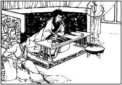 我八十年代创作《西汉演义》连环画时,去向先生请教,从先生劫后遗下的《蔡文姬》第一稿复印下来几幅。其中曹操与蔡邕交谈,文姬在屏后窥听,为同一情节反复所画的两幅,比较两幅之不同场景、器物,即可窥见先生历史修养之一斑。