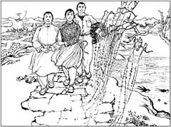 》编辑部之邀作客沈阳,公务完毕,好客的主人又送我们到大连参观。坐在我旁边的是辽美社派来陪同我们的一位编辑,他有五十上下年纪,矮瘦的个子戴一副深度的近视眼镜,说话斯斯文文,给人一种极易亲近之感。交谈中,我才知道他就是我慕名已久的谢京秋先生,真是有相见恨晚之感觉。我们谈得很多很多,我得以知道了谢先生一直在辽美社做连环画编辑,文革中遭下放,粉碎四人帮后才重返岗位,现主持《美术大观》杂志的连环画栏目,谈到辽宁的连环画人才和成就,谢先生很少谈及自己,他不断的提到了 王弘力、张有、徐思、赵明钧以及后起的李树仁、赵奇等对辽宁连环画的贡献。我谈到了给我印象深刻的《于文翠》,谢先生告诉我《于文翠》之后,他倾尽精力和心血创作了一部《枯木逢春》,意想参加全国连环画评奖。后来书尚未来得及出版,"文革"便至,画稿原作也在文革中遗失,后来落到一位工人之手,"文革"后这位工人又把画稿还给了谢先生,后来出版了,真有劫后逢生之感。我与谢先生高兴之余,又想回到沈阳后亲眼睹一睹谢先生的原作。我和谢先生在大连棒槌岛相处了短短的几天,后来从大连经北京回南宁  《枯木逢春》选页 |