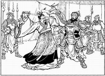 1938年由熟人介绍,杨锦文到“少呆画室”当学徒,其实老师并不懂什么美术,所以也教不出所以然来,只教学徒画各种花纹,然后又叫他们用拷贝纸复描别人的原稿,将各种人物分类装订成册,再七拼八凑配上景,就成为一部连环画而卖钱。杨锦文画画的场所,在老师家的阁楼上,夏天热得汗流浃背,除了大小便可以下楼外,不准与人交往。伙食极差,常常吃苞米粥和苞米饭,而老师自己却去上馆子。在这种长时间的工作条件下,营养又差,有一次下扶梯时,他跌下来昏死过去,由救护车送往闸北医院才救过来的。  杨锦文《赚曹休》选页 |