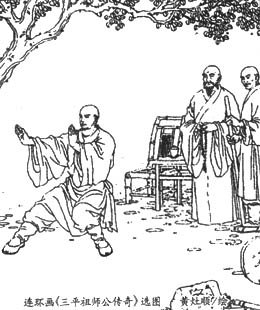 去年10月份,我作为一名祖国传统连环画艺术的爱好者,提笔给省委主要负责人写了封信,介绍了黄灶顺先生和他创作的连环画作品,认为黄灶顺先生创作的连环画是我们当前开展“三个代表”学习和爱国主义教育的好题材,也是我省开展招商引资的“中国结”,恳切希望在出版工作上能给予必要的帮助和支持。在寄送省委主要负责人的同时,也给黄灶顺先生寄了一份复印件。不久收到了黄灶顺先生的感谢信,但一直没有收到省领导的回复。我不知道是否真能对出版黄灶顺先生的连环画作品有些什么帮助。今年初,在福建漳州市有关领导和漳州市闽亚水泥有限公司董事长、总经理吴耀生先生的帮助下,这两部连环画终于问世了!这是黄灶顺先生用白描技法创作的两部连环画新作,这是连友们久久盼望终于问世的连环画新作!《开漳圣王陈元光》,漳州市图书馆2002年3月第1版第1次印刷,印数2000册,内部发行,32开本,153图。陈元光是唐初河南光州固始人,13岁时(669年)随父陈政带兵入闽平定蛮撩啸乱。经过十几年艰苦征战,披荆斩棘,终于结束了闽粤地区长期混乱的局面。并于垂拱二年(686年)建立了漳州郡,把中原的先进文化引进荒蛮落后的闽粤地区,使美丽富饶的南闽大地出现鱼盐成埠、文化渐开的繁荣景象。陈元光将军一生戎马倥偬,开疆拓土,被后人尊称为“开漳圣王”。连环画成功刻画了陈元光的历史功绩。《三平祖师公传奇》,香港文学报社出版公司2002年4月第1版第1次印刷,印数2万册,16开本103图,国际统一书号:ISBM:962-962-081-2,定价:16.00元。这部连环画根据唐代高僧、敕封广济禅师的释义中的民间传说和有关史料编绘。释义中(公元781-872),俗姓杨,名义中,14岁出家,27岁受具足戒。杨义中为民行善,除暴安良,悬壶济世等善举在民间广为传颂。在唐武宗皇帝废佛汰僧后,杨义中率众僧避入福建平和的三平山,在那里不仅保存了禅宗一脉,还教会了山民垦山围田,兴修水利,传授桑麻耕织技术、医学知识,教山民习武强身,给闭塞的山民带来了无限的春光。杨义中圆寂后,人们尊称他为“祖师公”,他的事迹流传到闽、粤、台及东南亚等地。近年来,在政府和海内外乡亲的共同努力下,三平寺进行了大规模的修缮,道路四通八达,多种设施已臻完善,它是宗教、旅游胜地,是祖国母亲联结海内外游子的感情纽带。黄灶顺先生的这两部连环画新作终于问世了!据说福建美术出版社准备正式出版《开漳圣王陈元光》,所以这次问世的内容版封面设计比较简洁 。黄灶顺先生1997年创作的福建历史人物《黄道周》连环画,也将由福建美术出版社再版。目前,黄灶顺先生正在进行紧张的修订工作。日前,美国《国际日报》中国新闻编辑部与漳州市委宣传部联合到漳浦县商借黄灶顺先生半年时间,让他专心搞连环画创作,漳浦县教育部门已同意,学校也正式通知了黄灶顺先生。我们预祝黄灶顺先生创作出更多、更好的连环画作品。