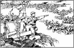 罗先生告诉我们虽然他已停止连环画创作多年,但是他的心并没离开过他曾经为之奋斗过的连环画事业。他对当今连环画爱好者不惜重金收藏优秀连环画的行动给予了高度的评价。他说:“当年去书店购买连环画与当今去书市收藏连环画就内涵上说是不一样的。前者仅仅只是为一般意义上的阅览,而后者还蕴含着对连环画创作历程的深刻反思。同时,这也表明连环画目前正处于理性的反思阶段。由此,我相信在经历了这一反思阶段之后,连环画还会重现辉煌。”这无疑将令广大连友的精神为之一振。罗先生的话不仅肯定了连友们的收藏,而且对连环画的振兴也起着重要作用,并让连友们看到曙光在前,而且更使我们想到了其中的潜台词:在市场经济的今天,连环画出版将不再是由出版社说了算,读者的审美意识不可忽视,否则将失去市场。这将是当今连环画如何振兴之关键,是非常切合时代脉搏的。  《难忘的战斗》选页 |