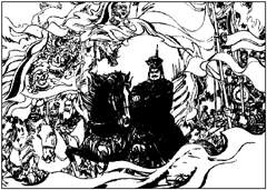 刘旦宅:我个人认为中国连环画发展鼎盛时期应该在50年代初期到60年代中期。那时的连环画不仅为广大普通读者所喜闻乐见,也得到各级领导的高度重视和支持,因此全国的各类美术人才都在为这一个美术画种作不懈努力,形成一种“你追我赶”的局面,更有不少画家在不断超越自我,从而涌现出了一大批优秀的连环画作品,至今为读者难以忘怀。如 丁斌曾、韩和平的《 铁道游击队》, 赵宏本、 钱笑呆的《 孙悟空三打白骨精》, 华三川的《 白毛女》以及 汪观清的《 红日》等,那个时期真可称为“时势造英雄”,连环画的高潮一浪高过一浪。连坛大师刘继卣先生在绘画艺术独树一帜;而 程十发先生在连环画理论研究方面颇有成就,特别是 贺友直先生,他潜心研究明清版画,又三下湖南农村体验生活,充分发挥中国连环画的传统特色,使《 山乡巨变》步入一个崭新的艺术境界,成为中国连环画的经典作品,是中国连环画史上的一座里程碑。  《屈原》选页 |