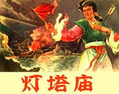 我曾无数次猜想老人会是什么样了,是银须垂胸的儒士风度,还是现代的西装衣衬,家中是否有画台,还是满壁书橱的书房,精品连环画一定有很多,并且尚有不少原稿。然而站在我面前的老人要比实际七十高龄的年纪年轻很多,看上去不到60岁,红润的脸庞,神态沉稳,所居住的房子也仅一间居室,几件普通的家具,无一本连环画,我很惊诧自己走错了地方。老人听明白了我的来意,接过我递过去的《追鱼》、《 灯塔庙》连环画,不无感慨地说:"我早已不画了,搁笔已40年了,你们居然还没忘记我,还能来看望我。"他显得很激动的神情,通过交谈,我得知老人一生坎坷的命运。  《灯塔庙》封面 |