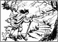 然而在后来的运动和那场史无前例的十年浩劫中,这位年轻而有才华的画家未能幸免,被迫搁下手中的画笔,中断了已处于巅峰的连环画事业。他昔日的某些学生背叛了他,有的人嫉妒他的成绩,屡被责难。"为什么《追鱼》中把女妖精画得那么美?而把劳动妇女腰画得那么细?美化牛鬼蛇神,侮辱咱们妇女半边天没有力量。"昔日的辉煌转眼变成了罪状,家中全部连环画精品及手稿被搜出付之一炬,康老师面对这一切,心在流血,欲哭无泪,在这样一场恶梦般运动中,身心遭受摧残的又何止康老一人呢?  《酒丐》选页 |