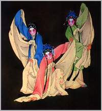 卖画收入不能完全解决温饱,做画之余她又开始收学生。徒弟们的家境比起先生来大约稍好些,除了必交的学费之外,有时她们眼看先生的日子见紧,有时一根萝卜就是一天的伙食,便不约而同地略尽一点心意,这个送来一棵白菜、那个带来一袋煤,另一个把先生接到家去吃顿饭。  《西厢记》选页 |