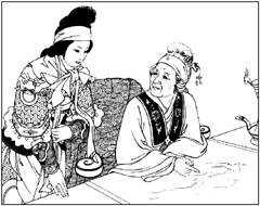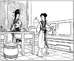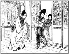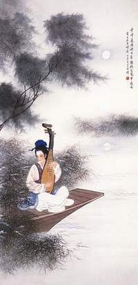 1977年年末的一天晚上,人民美术出版社几位负责同志敲开了王叔晖家的门,他们来的目的一是给王叔晖拜年,二是动员她考虑画一组《红楼梦》人物画。  《琵琶行》 |