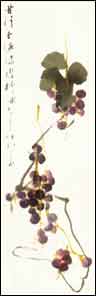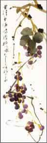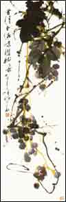 五、用藤黄调花青,加少许赭石,画葡萄之嫩茎。把它们串连起来,注意 局部章法,或藏或露,相互参差。